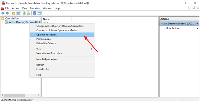 Right-click the Active Directory Schema node again and select “Operations Master”: