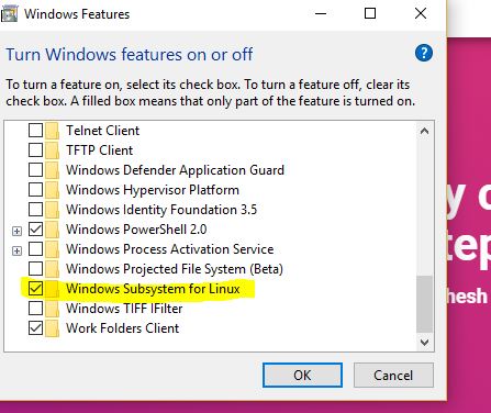 Open control panel- Programs and Features-Turn Windows Features on or off- Enable windows subsystems for Linux- Ok