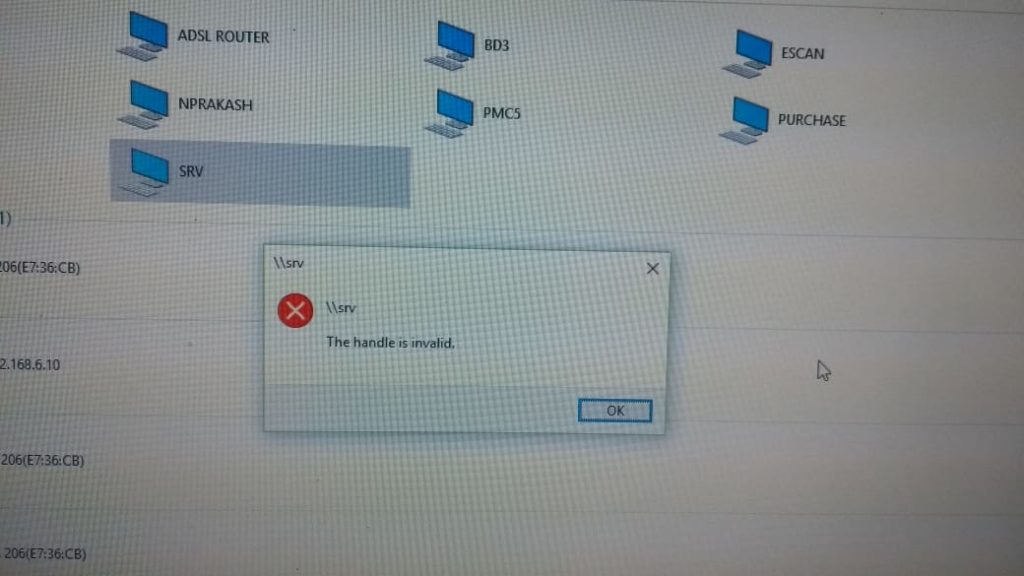 I have faced this issue today morning one of our office staff try to access share drive while clicking gets pop-up box message come out saying “The handle is invalid”. so many steps troubleshot on this issue Updated windows, changed workgroup, and IP address but not work out.